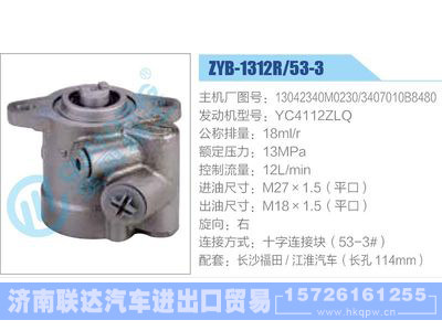 ZYB-1312R-53-3,13042340M0230,3407010B8480,YC4112ZLQ动力转向助力泵,叶片泵