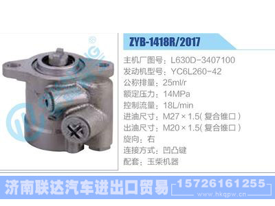 ZYB-1418R-2017,L630D-3407100,YC6L260-42动力转向助力泵,叶片泵