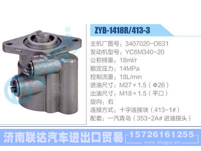ZYB-1418R-413-3,3407020-D631,YC6M340-20动力转向助力泵,叶片泵
