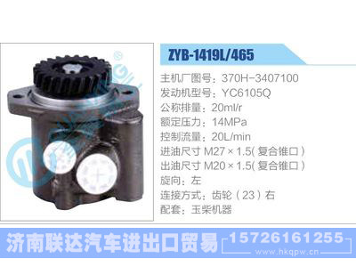 ZYB-1419L-465,370H-3407100,YC6105Q动力转向助力泵,叶片泵