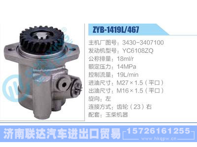 ZYB-1419L-467,3430-3407100,YC6108ZQ动力转向助力泵,叶片泵