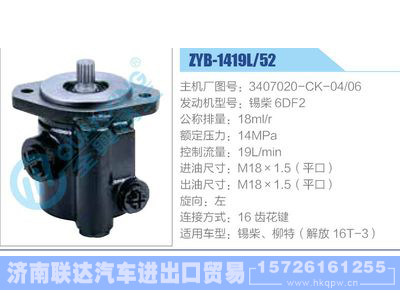 ZYB-1419L-52,3407020-CK-04-06,锡柴6DF2动力转向助力泵,叶片泵