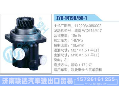 ZYB-1419R-58-1,1122934080002,潍柴WD615-617动力转向助力泵,叶片泵