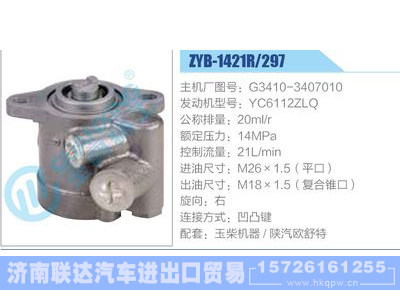 ZYB-1421R-297,G3410-3407010,YC6112ZLQ动力转向助力泵,叶片泵