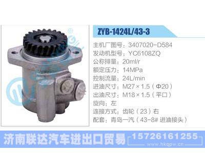 ZYB-1424L-43-3,3407020-D584,YC6108ZQ动力转向助力泵,叶片泵