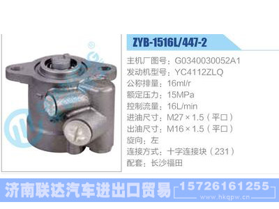 ZYB-1516L-447-2,G0340030052A1,YC4112ZLQ动力转向助力泵,叶片泵