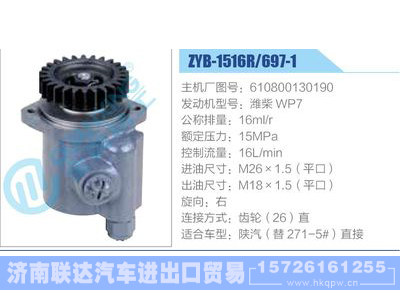 ZYB-1516R-697-1,610800130190,潍柴WP7动力转向助力泵,叶片泵