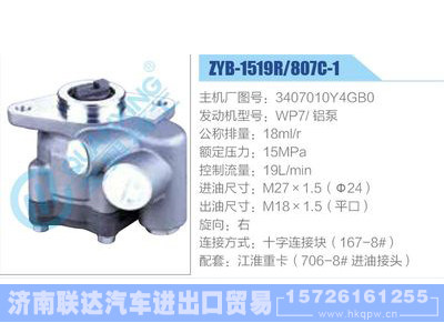 ZYB-1519R-807C-1,3407010Y4GB0,WP7铝泵动力转向助力泵,叶片泵/ZYB-1519R-807C-1,3407010Y4GB0,WP7铝泵