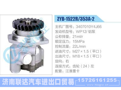 ZYB-1522R-353A-2,3407010Y4J66,WP12铝泵动力转向助力泵,叶片泵