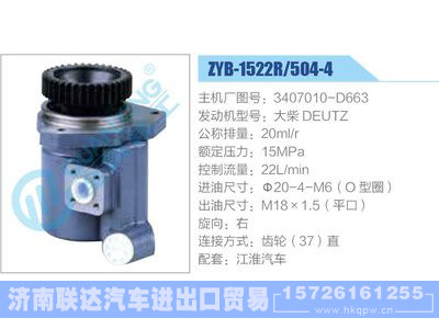 ZYB-1522R-504-4,3407010-D663,大柴DEUTZ动力转向助力泵,叶片泵